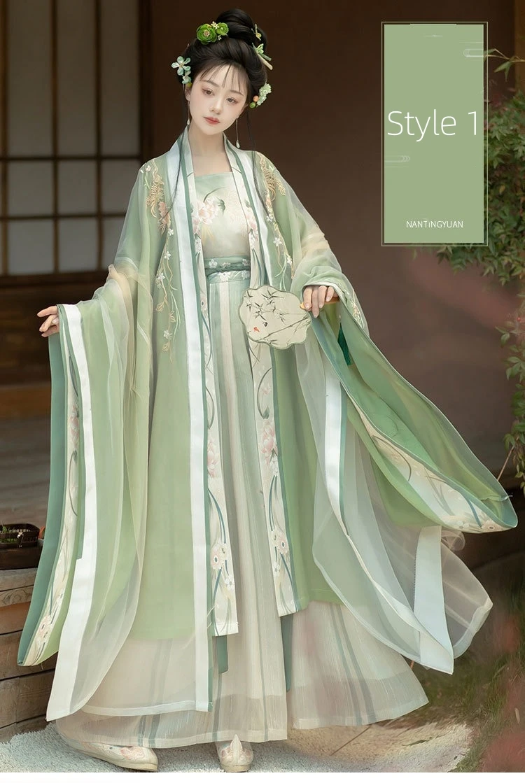 This Dynasty Song Hanfu 5pcs set is crafted for those who appreciate the cultural significance and aesthetic beauty of ancient Chinese clothing. The set includes a pleated skirt and top with large flowing sleeves, capturing the refined silhouette characteristic of Song Dynasty fashion. Ideal for adults seeking an elegant hanfu dress for ceremonies, festivals, or personal collection, this ensemble combines historical accuracy with modern sizing options from XS to XL. The product is offered by a reputable hanfu shop committed to preserving traditional Chinese garment artistry.