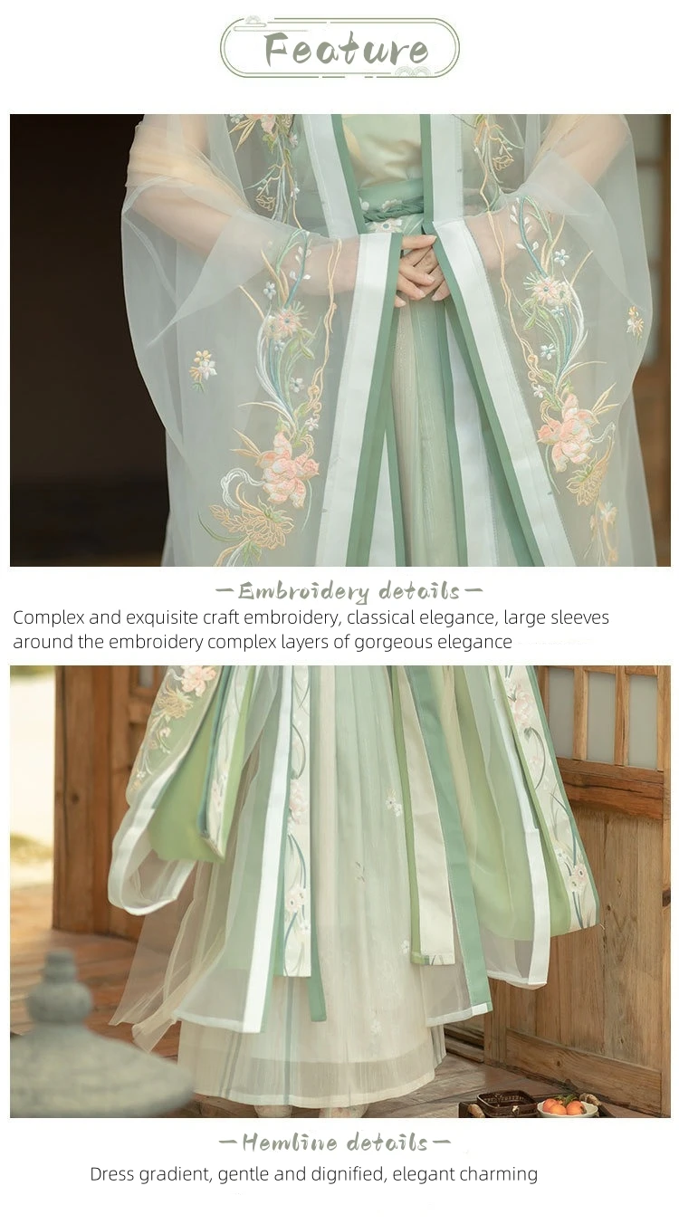 Beyond its visual appeal, this hanfu dress emphasizes usability and comfort, utilizing lightweight organza for breathability during extended wear. The sizing range and seasonal suitability make it accessible for various body types and occasions. Featuring intricate embroidery that withstands wear without compromising fabric integrity, it offers lasting user value. Whether worn for formal cultural events or casual appreciation, it delivers both elegance and ease, aspects highly valued by customers exploring hanfu for sale through dedicated hanfu shops.